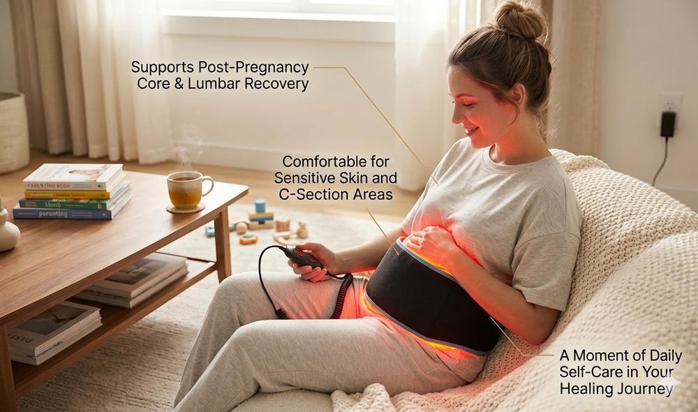 The at-home red light therapy belt built exclusively for women — targeting belly contouring, back pain relief, and skin tightening in one 20-minute daily session.